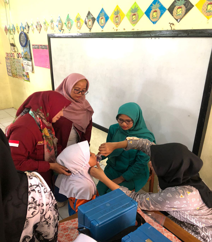 Serang, (25/07/24) – Mahasiswa Kelompok 40 KKM UNIBA Bidang Kesehatan dan BPH Kamis 25 Juli 2024, berkunjung ke 3  sekolah yaitu PAUD LESTARI, SDN Cikerai 1 dan SDN Cikerai  2 di Desa Panakodan dan Desa Sambidongko, Kelurahan Cikerai, Kecamatan Cibeber, Kota Cilegon. Selain menjalankan Program kerja Kelompok 40 KKM UNIBA juga membantu PUSKESMAS Cibeber dalam rangka mensukseskan Pekan Imunisasi Nasional (PIN) POLIO.  Para mahasiswa terjun langsung dan membantu petugas PUSKESMAS dalam melakukan kegiatan Imunisasi di 3 sekolahan tsb. Kegiatan Imunisasi di mulai pukul 09.00 s/d 11.00 WIB. Mastiyah selaku kepala SDN Cikerai 2, menerangkan bahwa dirinya merasa senang melihat para mahasiswa kelompok 40 KKM UNIBA membantu petugas PUSKESMAS melaksanakan Pekan Imunisasi Nasional (PIN) POLIO di sekolah yang ia pimpin. Walaupun ada salah satu siswa yang mulanya tidak ingin di imunisasi sampai berontak  dan nangis, alhamdulilah berkat bujukan dari mahasiswa, guru dan kepala sekolah siswa tersbeut akhirnya mau di imunisai.