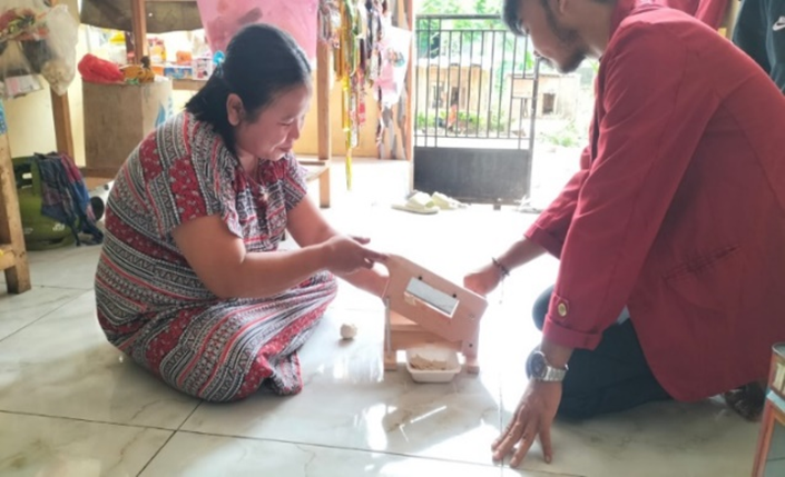 Ibu Murni atau Mama Awan juga menyampaikan “pada kegiatan pemotongan bahan baku hanya menggunakan pisau seadanya dengan alas yang yang terpisah dan terkadang tidak menggunakan alas pada saat pemotongan yang mengakibatkan telapak tangan salah satu pekerja mengalami sayatan”. Maka dari itu, KKM kelompok 72 beserta dosen pendamping lapangan Ibu Asih Setyo Rini, S.T., M.T juga melakukan pengembangan Teknologi Tepat Guna (TTG) pada UMKM basreng Ibu murni atau Mama Awan berupa alat pemotong bakso sebagai bahan baku utamanya. Alat pemotong tersebut dikembangkan guna mengurangi adanya kecelakaan pada saat melakukan kerja / produksi seperti telapak tangan tersayat oleh pisau.