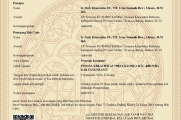 Kronjo (09/09/2024) – KKM 74 Universitas Bina Bangsa membuat surat hak cipta tentang Website “PESONA KREATIVE DESA KRONJO,[…]
